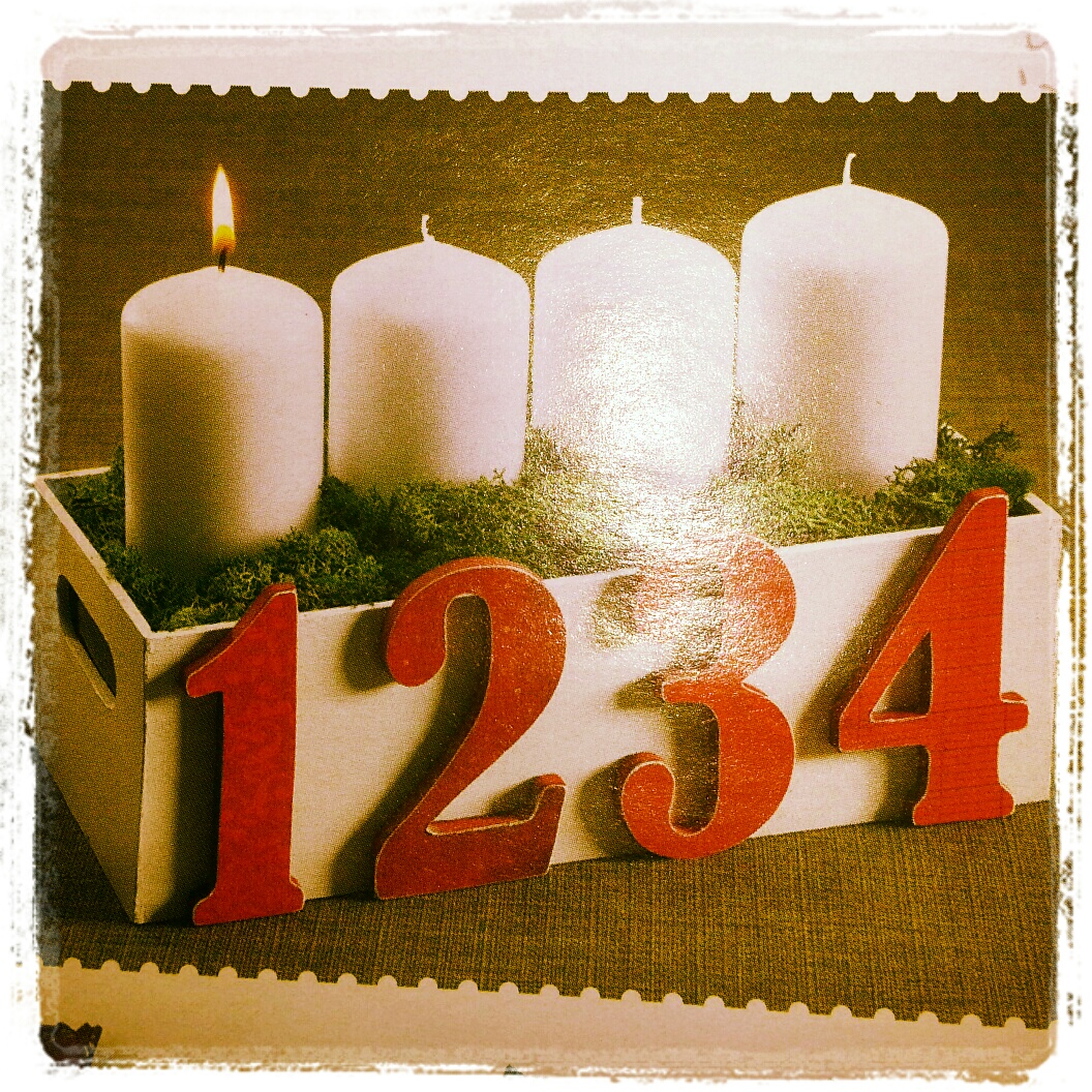 Inspirasjonen fikk jeg av bildet over; trekasse, tørr og fin mose og kubbelys...